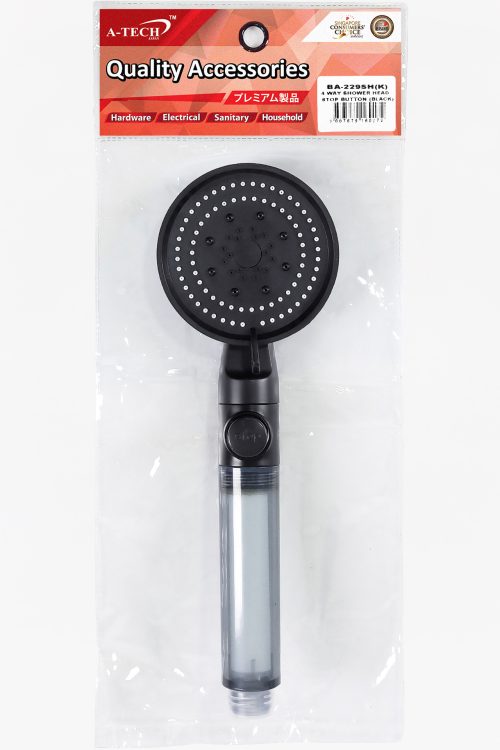 4 WAY SHOWER HEAD – STOP BUTTON (BLACK)