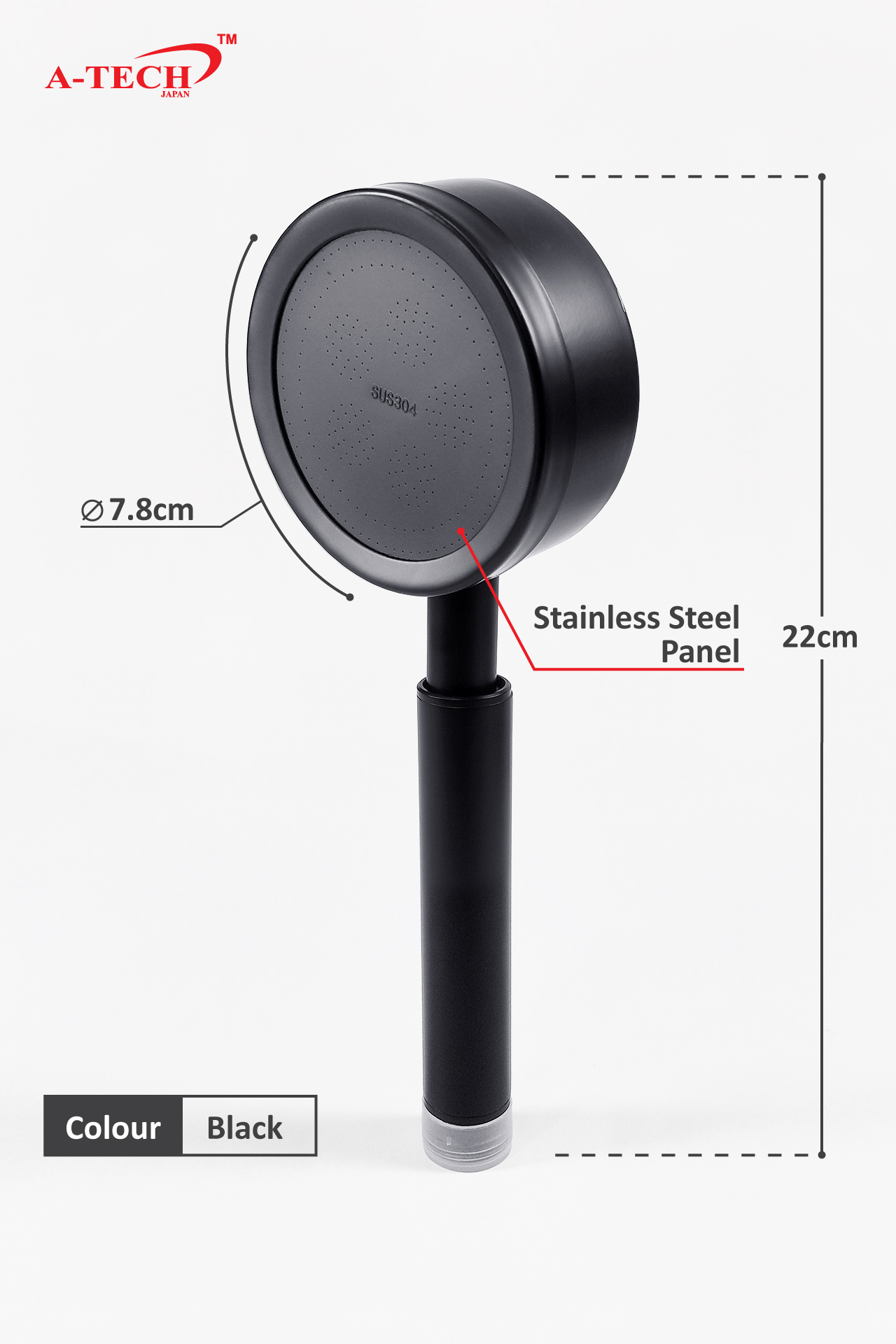 With a 7.8cm diameter spray face and 22cm total length, it provides a balanced water flow for a refreshing shower experience. The stainless steel construction ensures excellent resistance to rust and corrosion, making it ideal for long-term daily use.