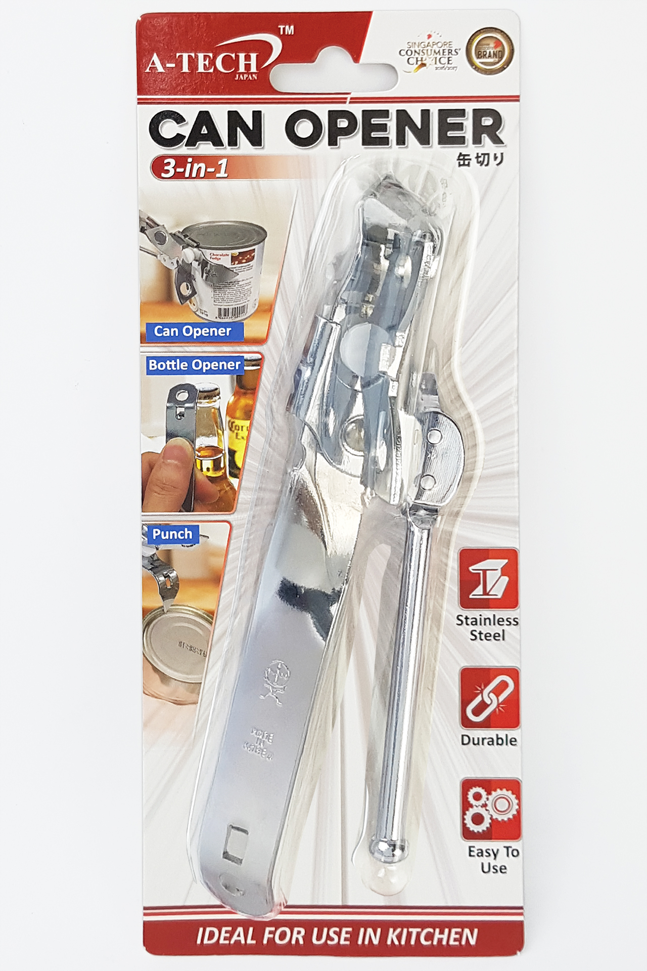 3 IN 1 CAN OPENER is made of quality stainless steel, it is a multi-functional can opener that can open cans, bottle caps, Sealed Lids easily without effort. Easy to use and clean by simply rinsing with clean water.