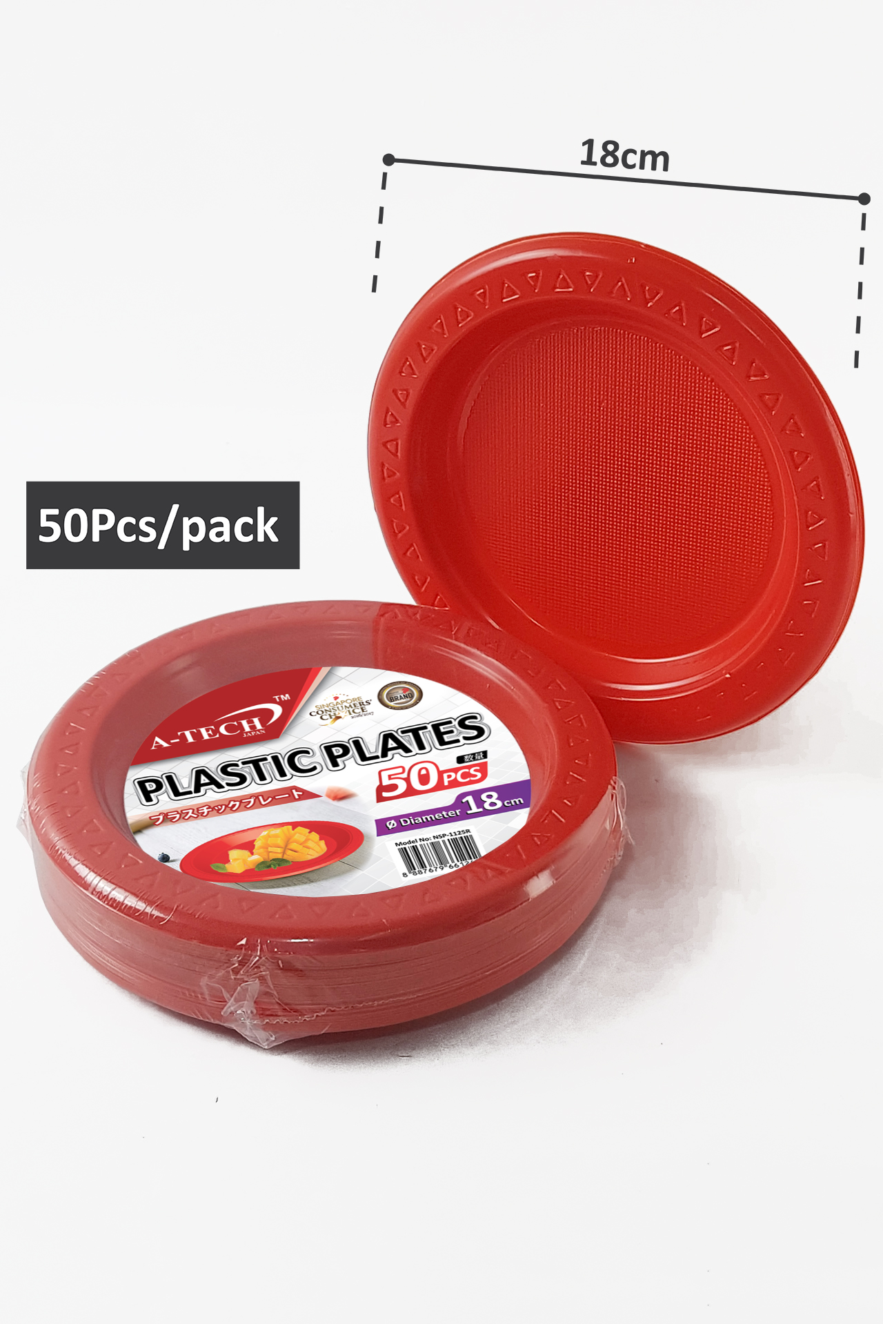DISPOSABLE PLASTIC PLATE RED – 18CM (50PCS) Our disposable plates are suitable for meals, snacks, picnics, or even art projects. This disposable plastic plate comes in red which co-ordinates with many tableware designs and decorations, it can also be used to plate offerings. Convenient to use, no worries about transporting and cleaning of your dishes. Comes in packs of 50 plates.
