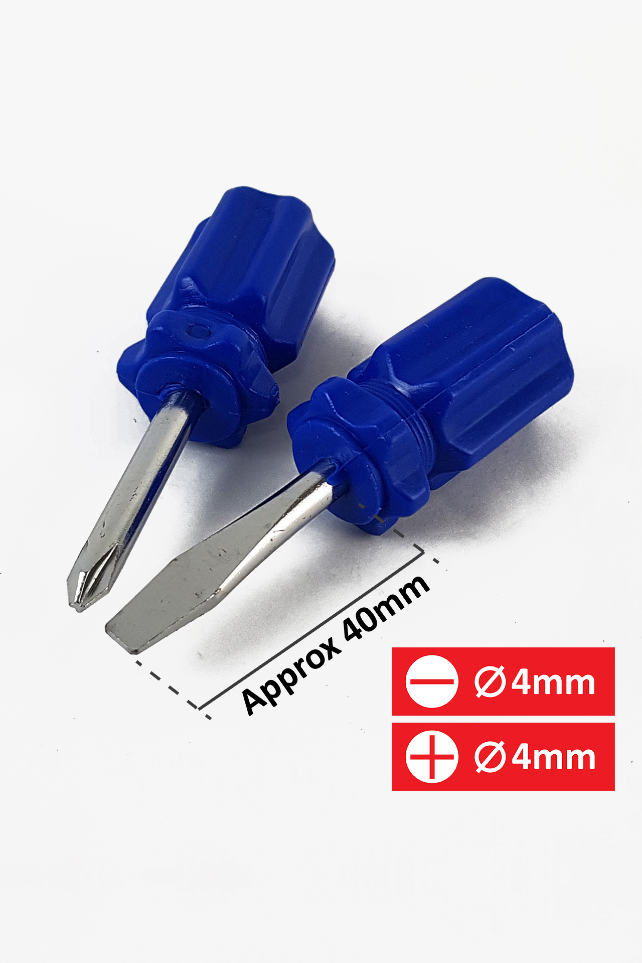 2PC SCREWDRIVER (3 inch) is a two piece screwdriver set, the product has 1 x Plus (+) Screw type & 1 x Minus(-) Screw type in one packing.